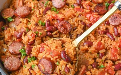 Le riz cajun et les haricots en une seule casserole sont un repas simple, riche en saucisse fumée, haricots et…