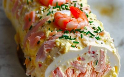 Ingrédients (6 à 8 personnes) Base de la bûche : 200 g de chair de crabe (fraîche ou en conserve,…