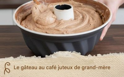 Une recette classique du gâteau au café moelleux de grand-mère, au café fort et aux noisettes moulues. Simplement cuit, moelleux…