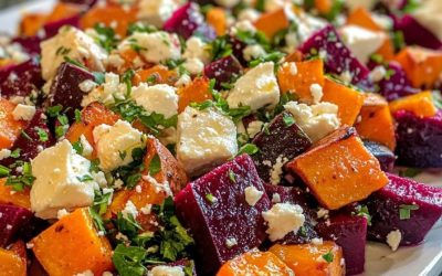 Cette salade vibrante allie la douceur du potiron rôti et la saveur terreuse de la betterave à de la feta…