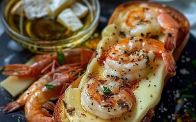 Sandwich au Fromage, Pain à l’Ail et Crevettes Grillées 🧀🍤😋 Ingrédients : Pour le pain à l’ail : 1 miche…
