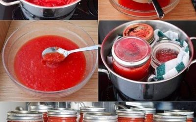 Ingrédients : TOMATES EN SAUCE 2 kg BASILIC FRAIS au goût Comment faire de la purée de tomates : Étape…