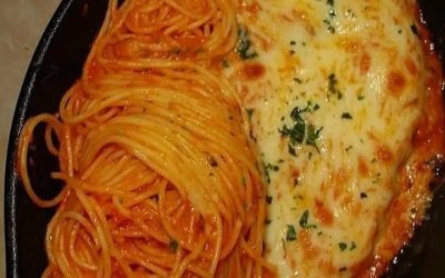 Poulet parmesan avec spaghettis IngrĂ©dients : 2 filets de poulet 1 tasse de chapelure 1/2 tasse de parmesan râpĂ© 1…