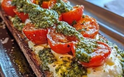 Bruschetta à la burrata, au pesto et aux tomates rôties 🍅🌿 Une touche gourmande sur la bruschetta classique, cette bruschetta Burrata,…