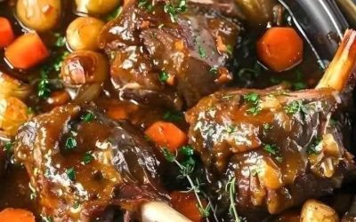 Jarrets d’agneau rustiques cuits lentement dans une sauce riche aux herbes