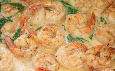 Casserole crémeuse de crevettes et d’épinards au four
