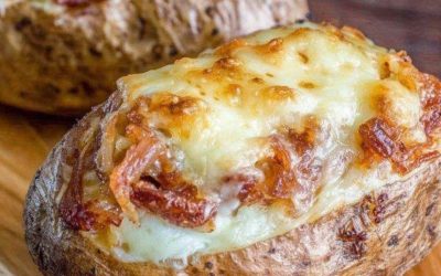 Cette recette de pommes de terre farcies à l’oignon transforme une simple pomme de terre au four en un repas…