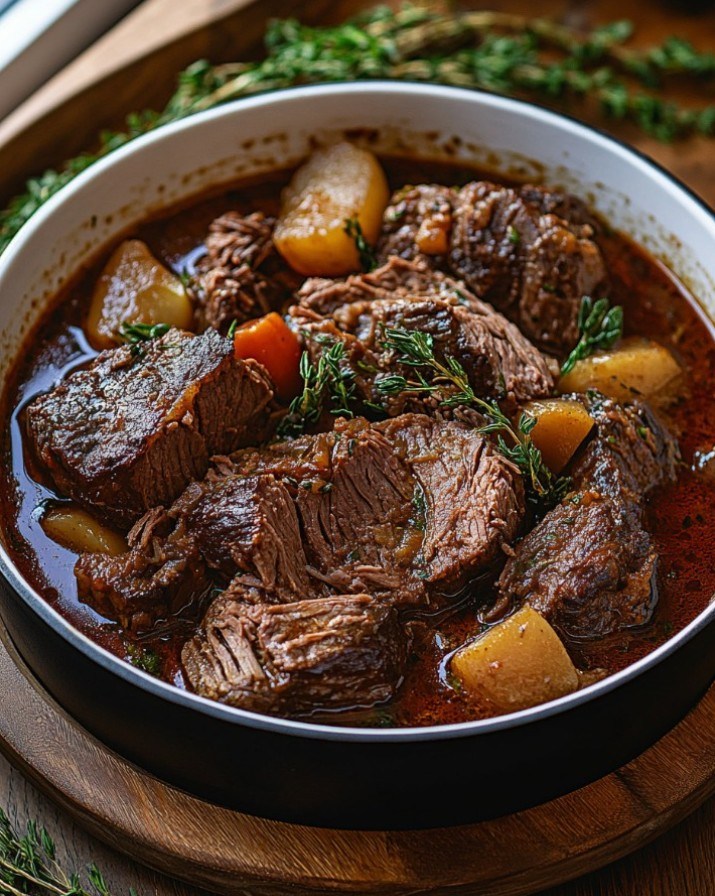 Un délicieux pot-au-feu à l’italienne mijoté lentement dans une savoureuse sauce tomate.