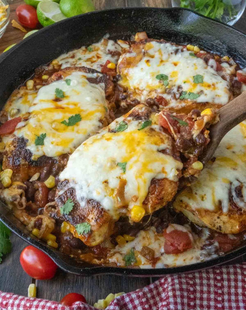 Rempli de poitrines de poulet juteuses et assaisonnées, de légumes tendres et de fromage fondu, ce poêlon de poulet constitue un dîner facile et délicieux !