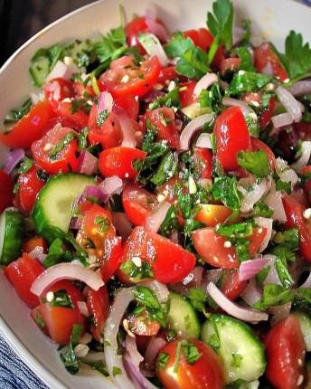 Fraîche, parfumée, colorée, cette salade traditionnelle venue tout droit de Turquie est un véritable concentré de soleil dans votre assiette. À base de tomates juteuses, de persil frais et d’un assaisonnement qui titille les papilles, elle accompagne à merveille grillades, kebabs, poissons… ou se savoure simplement avec du pain croustillant.